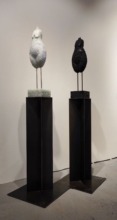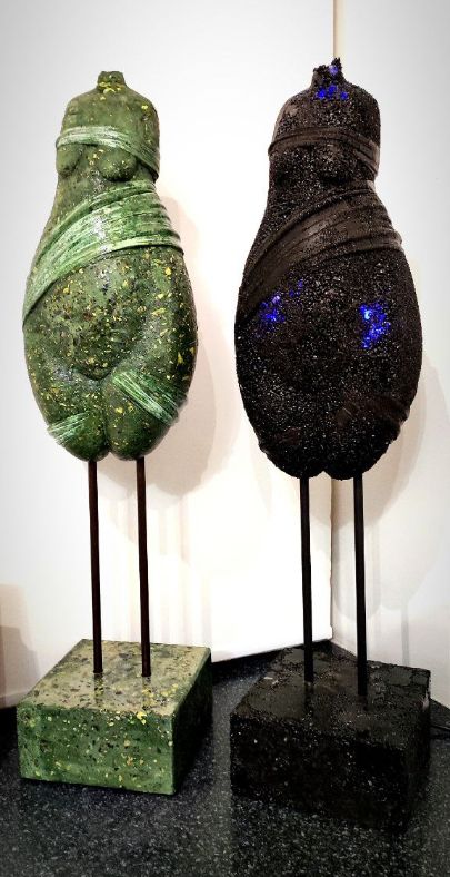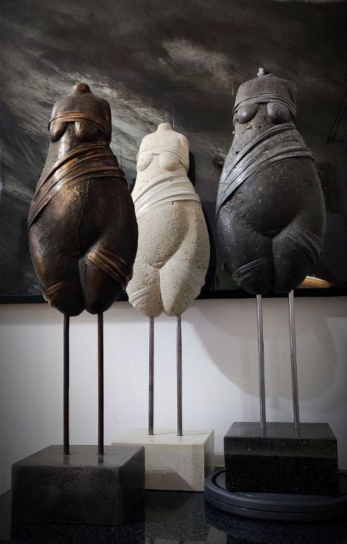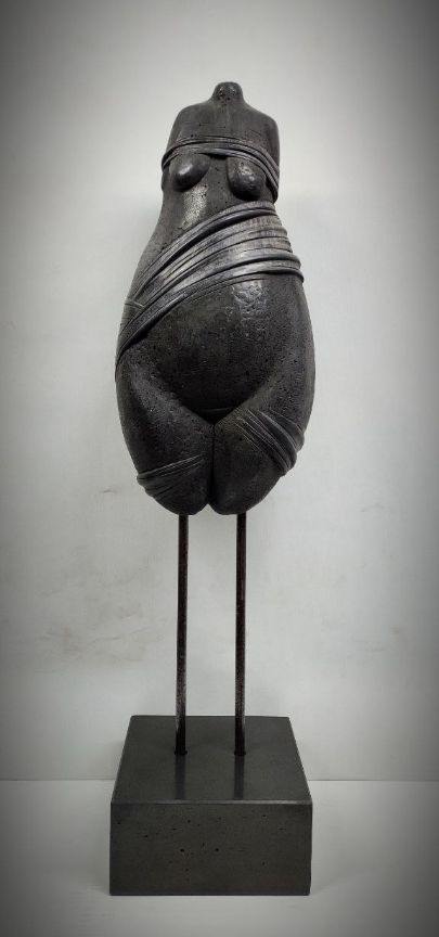 Автор сохраняет характерные признаки, присущие вариативным первообразам с их ромбовидными формами, узкими в верхней части и широкими в бёдрах и животе, и зачастую лишёнными конечностей и головы. Безусловно, речь об особом синтезе множественных палеолитических прототипов, извлечённых археологами из культурных слоёв Евразии и нашедших своё «упокоение» в витринах мировых музеев и потаённых комнатах частных коллекций.